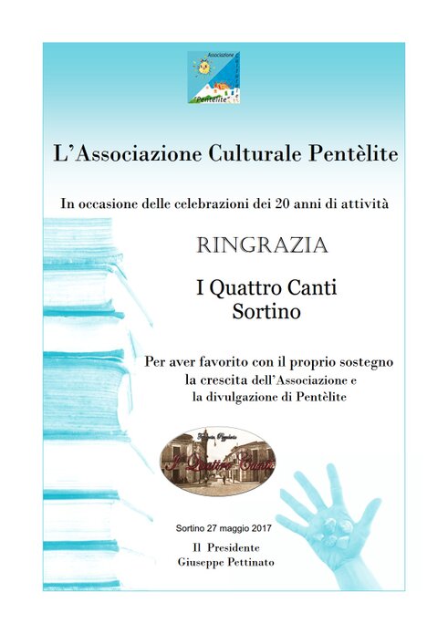 La presentazione del libro si è svolta nel ristorante/pizzeria "I Quattro Canti", il 26 maggio 2014 a Sortino.